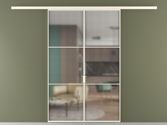 Дополнительно на раздвижную двустворчатую перегородку вдоль стены и четырёхстворчатую перегородку внутри проёма с двумя неподвижным полотнами можно установить механизм синхронного открывания — при открывании одной створки, вторая открывается автоматически.